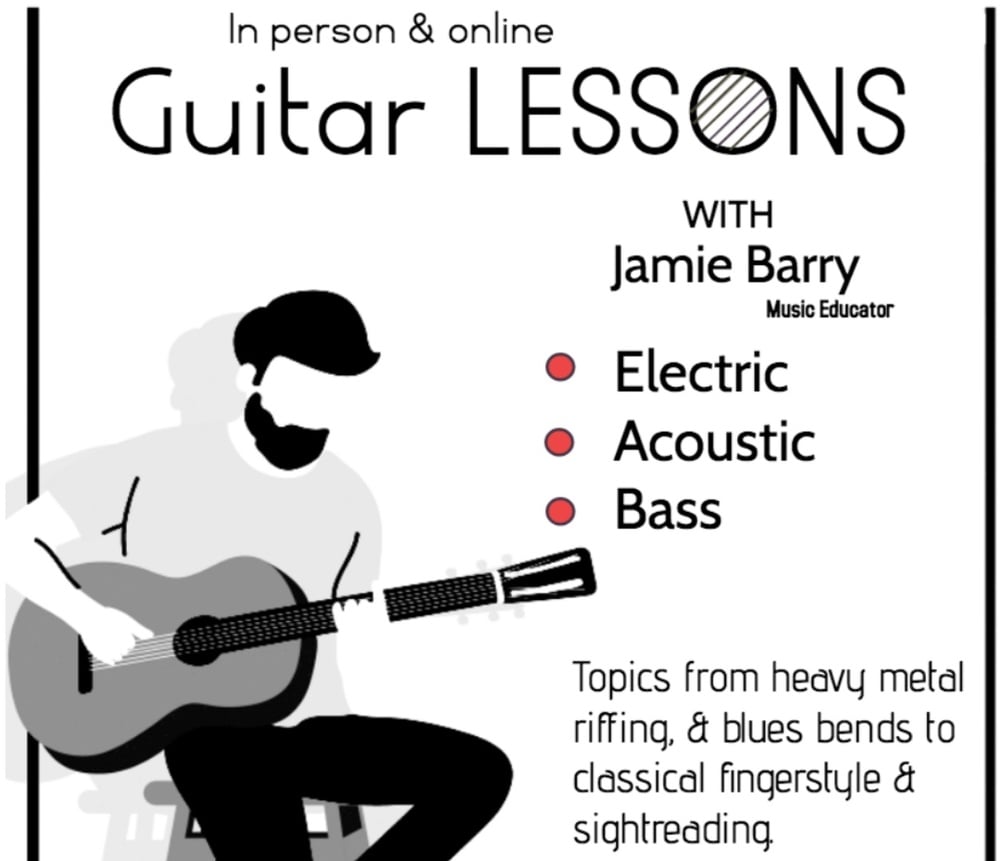 A one on one virtual lesson with Jamie for 45 minutes. All instruments welcome. Beloved subjects such as chordal harmony, guitar technique, rhythmic performance, and instrumental practice techniques are always on the menu.